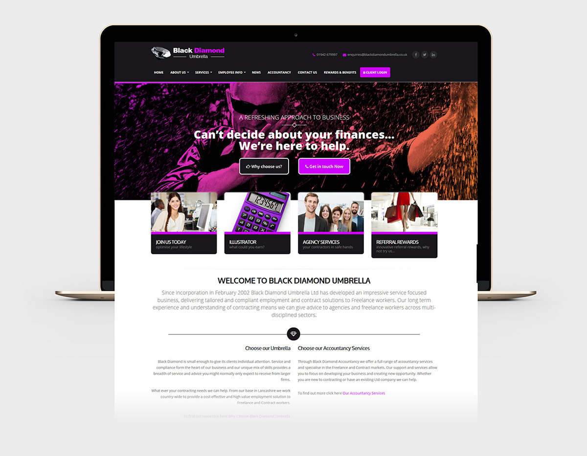 Black Diamond required a refreshing approach to what sometimes can be a same old tired looking accountancy image. The exciting new image had to be diverse enough to work across a whole range of mediums including; web, email, print & exhibition.